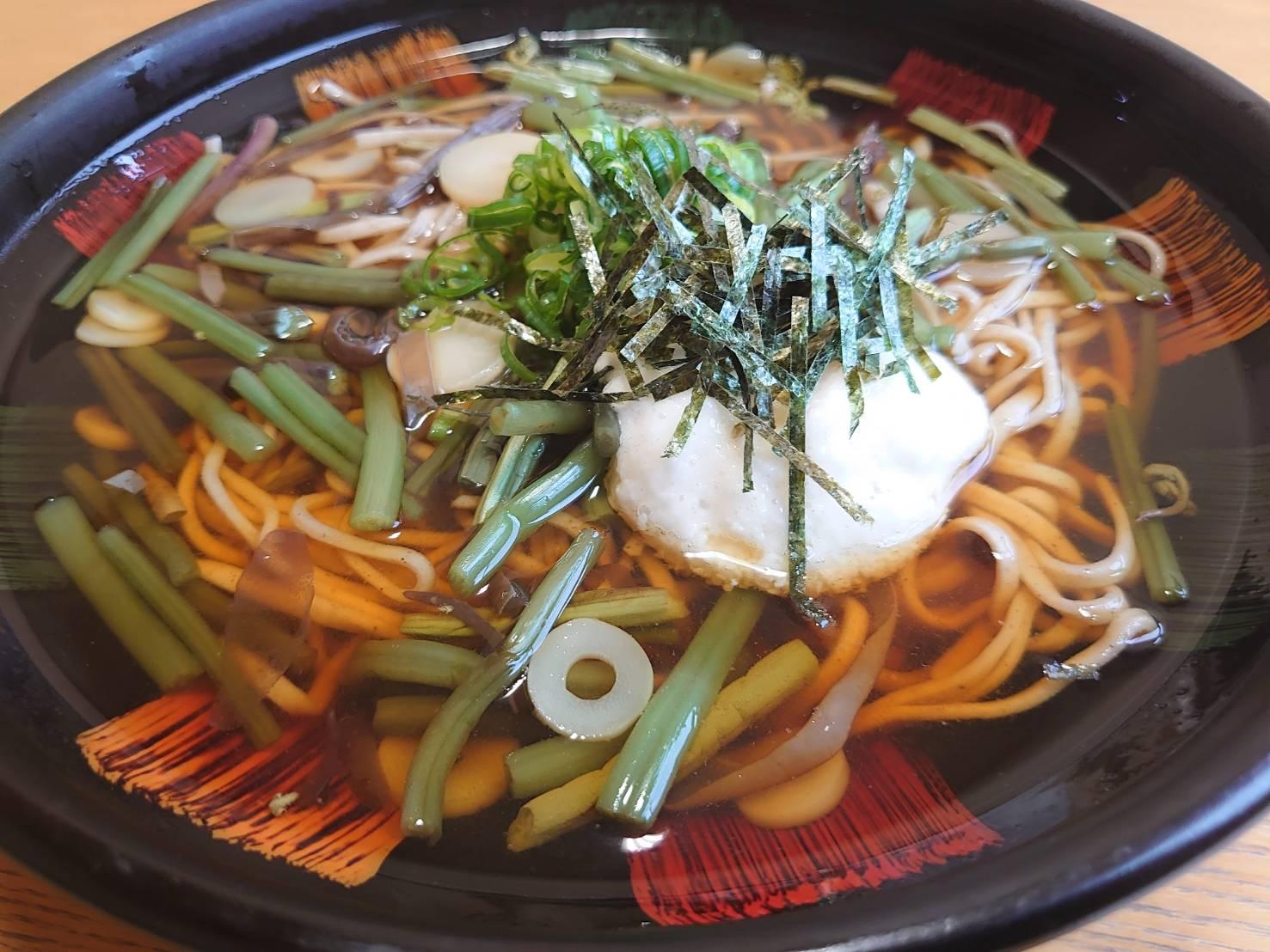 と山菜そば(上代そば)・天ぷらの和食セットです。(夏季はざるそば)